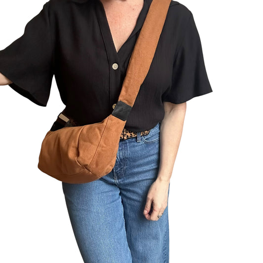 Brixton cross body sling bag - Brown plain cotton canvas - small