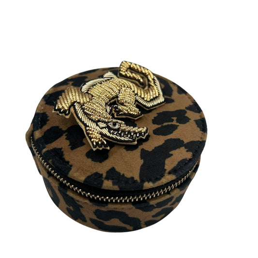 Jewellery Travel Pot in leopard print - Crocodile pin