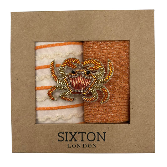 Cream Lyon & Orange Vegas sock box duo with embroidered brooch