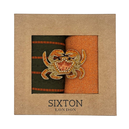 Grey Lyon & Orange Vegas sock box duo with embroidered brooch