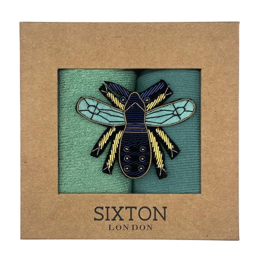 Sage Sienna & Pistachio Vegas sock box duo with embroidered brooch