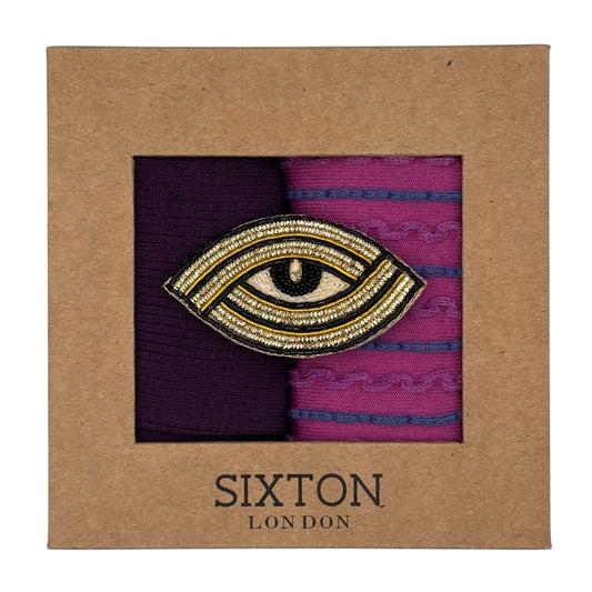 Seoul & Barcelona Purple sock box duo with embroidered brooch