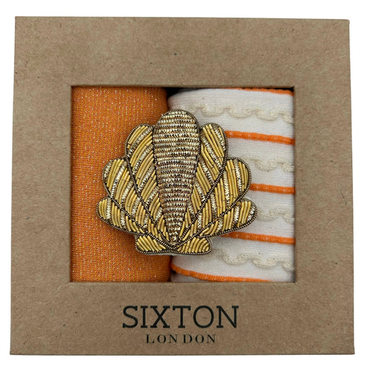 Lyon & Tokyo Cantaloupe sock box duo with embroidered brooch