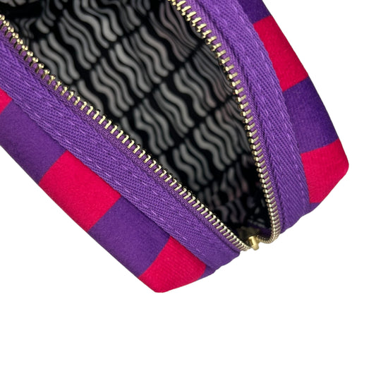 Large purple stripe makeup bag with Red Lips brooch