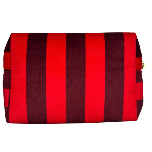 Large red stripe makeup bag with Bow brooch