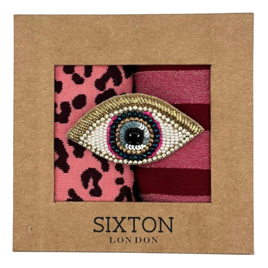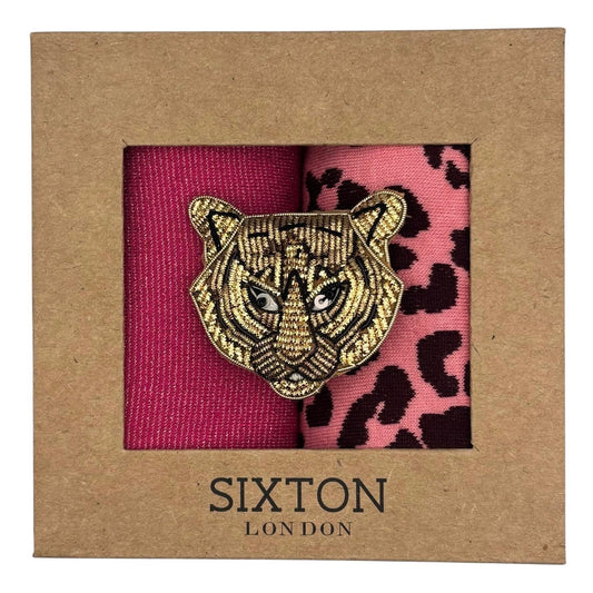 Pink Barcelona & Leopard sock box duo with pin