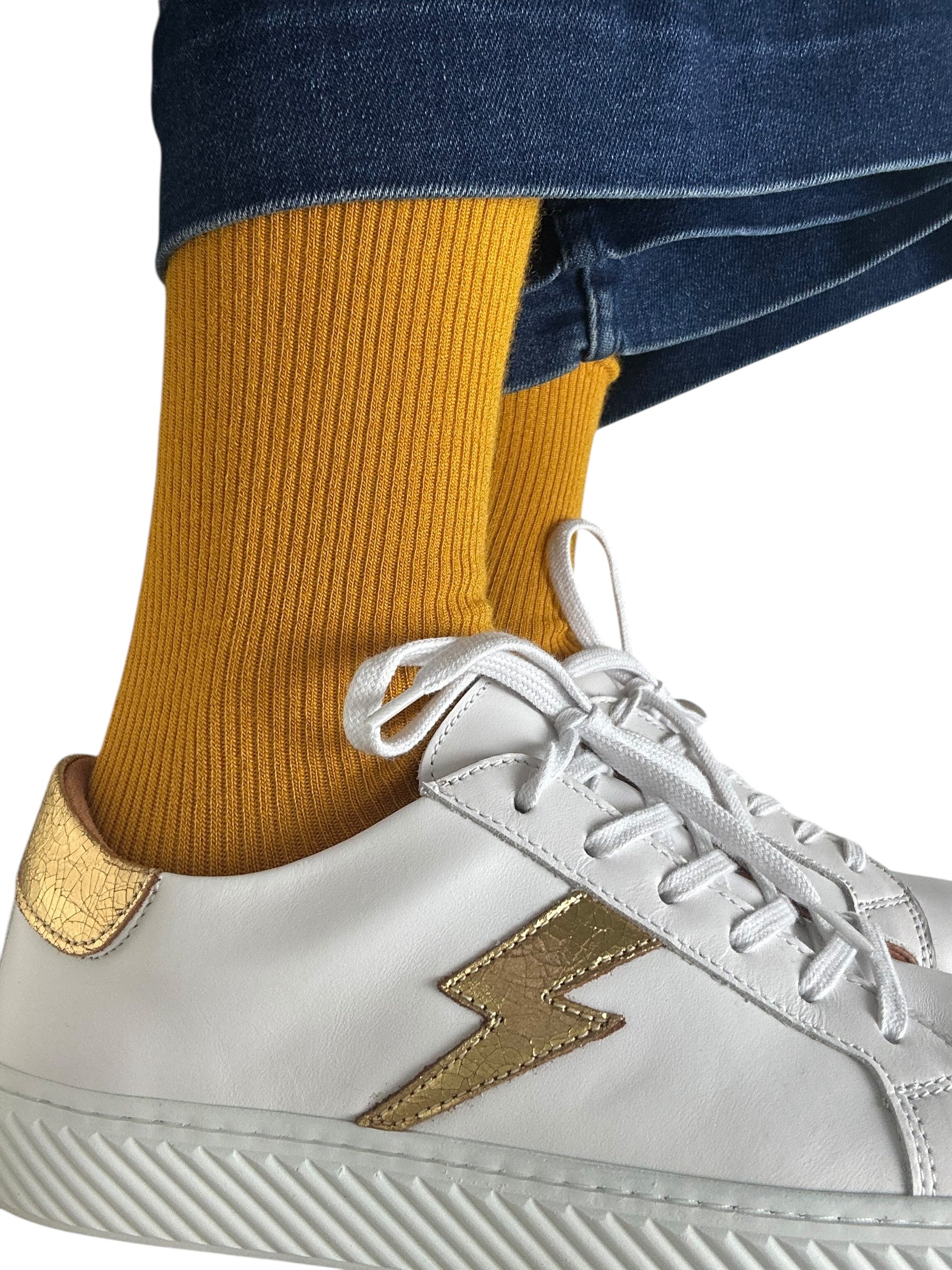A pair of cosy, fine knit merino wool mix socks in rich jewel colours.