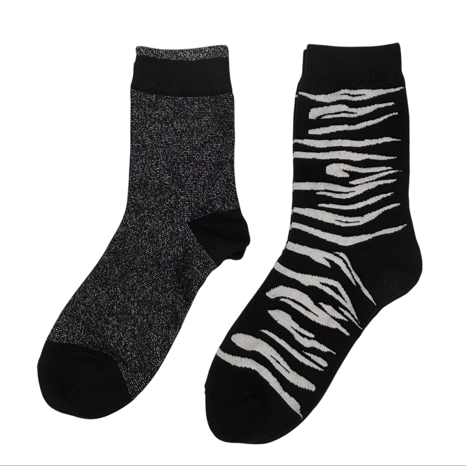 Two pairs of socks in a gift box - black sparkly Tokyo & black zebra print Savannah