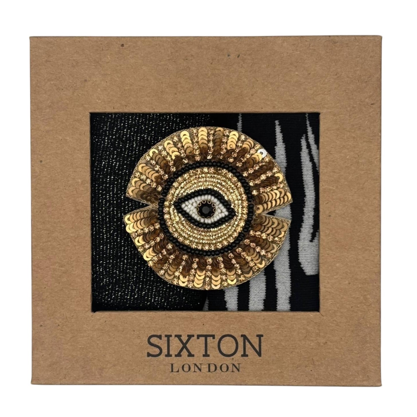 Black Tokyo & Black Savannah sock box duo with embroidered brooch