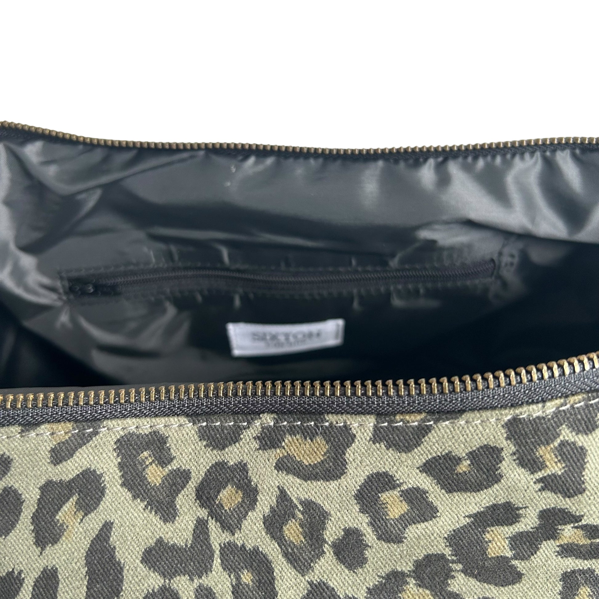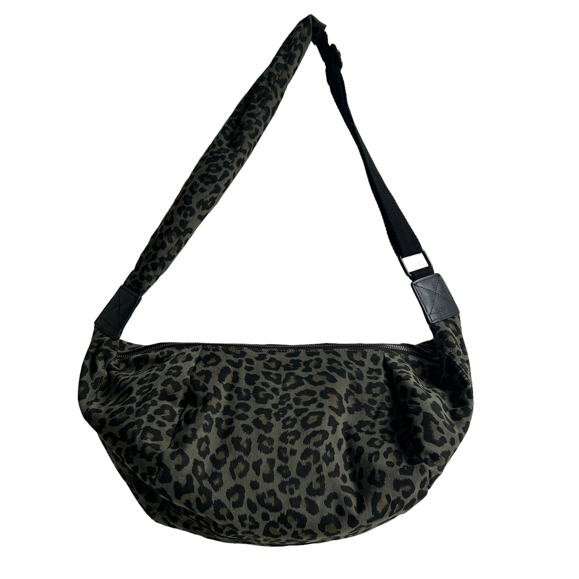 The Brixton bag - our best selling sling bag / cross body bag in a dark green leopard print, made from recycled cotton. Also available in small.