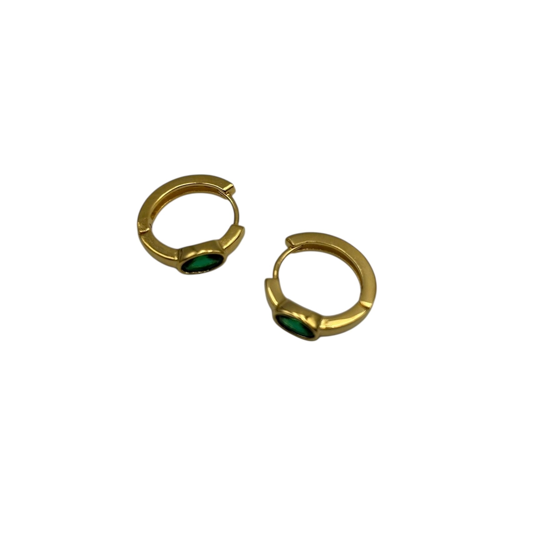 Simple, stylish Huggie style earrings with an emerald sparkle.