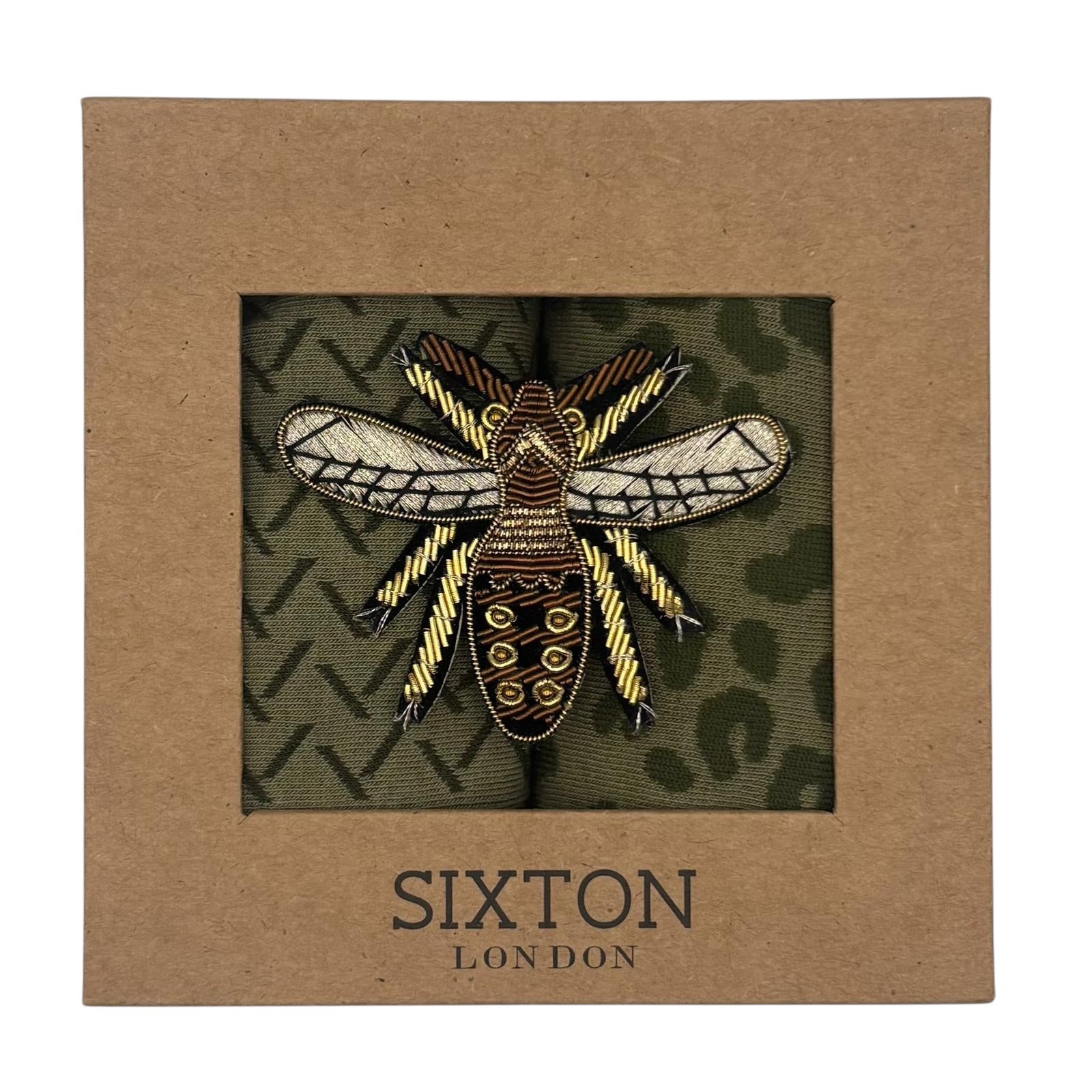 Ivy Kyoto & Leopard sock box duo with embroidered brooch