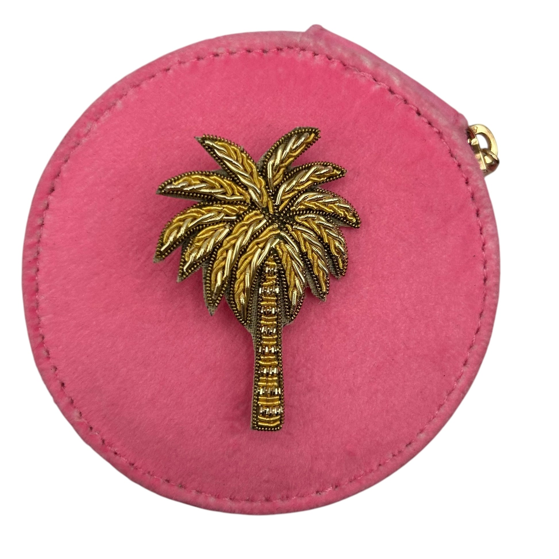 Jewellery Travel Pot in pale pink - Palm Tree brooch