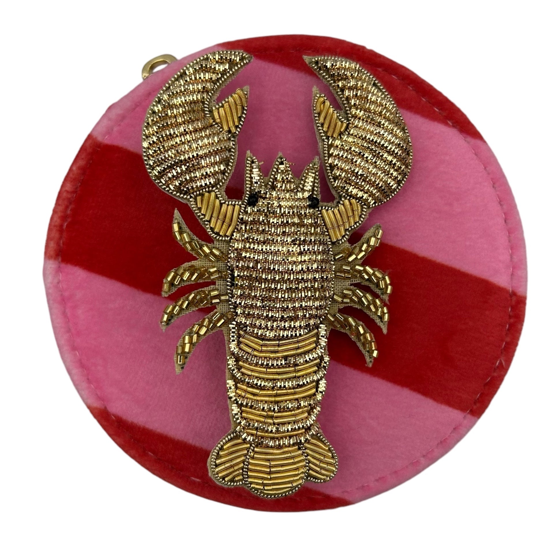 Jewellery Travel Pot in pink stripe - Lobster brooch