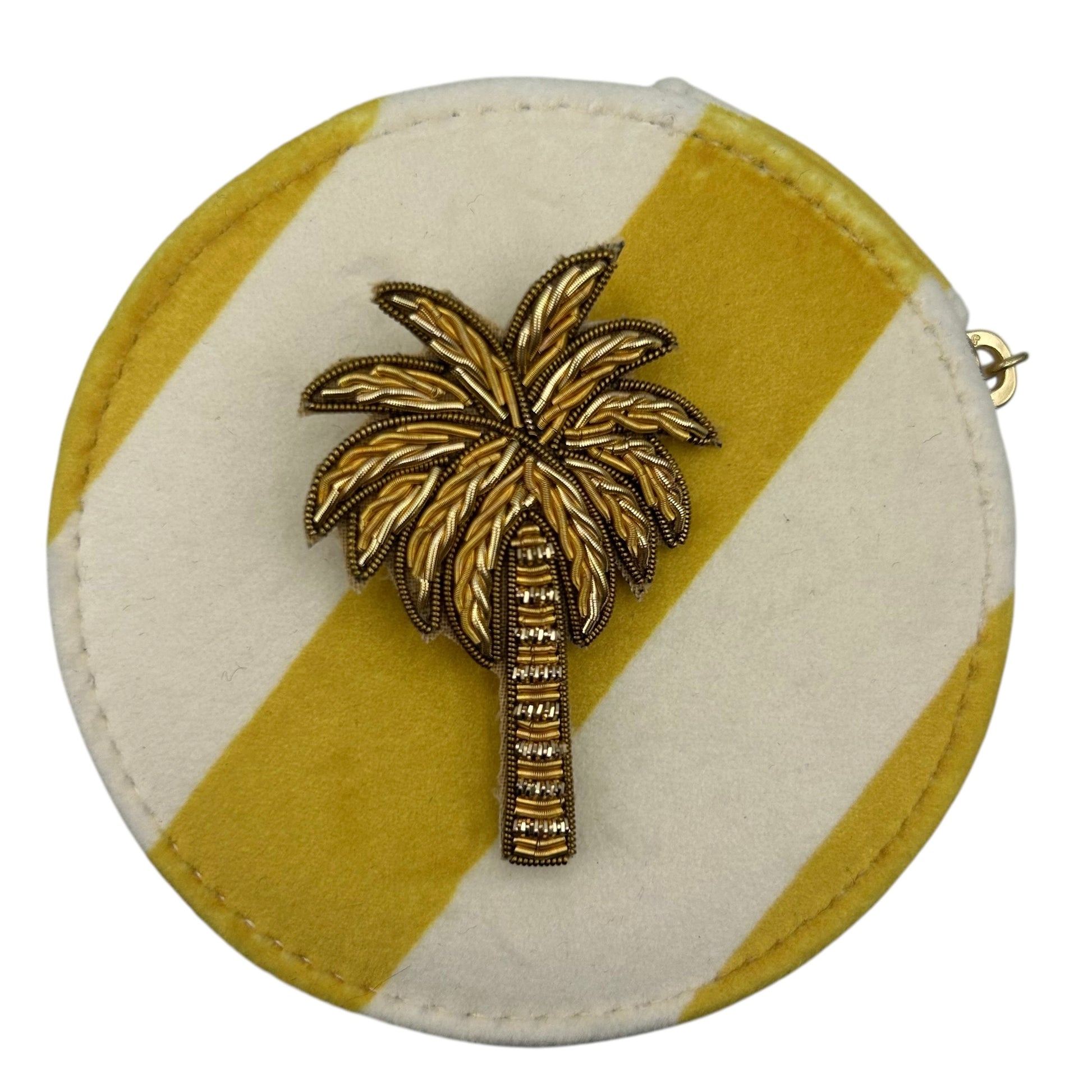 Jewellery Travel Pot in yellow stripe - Palm Tree brooch