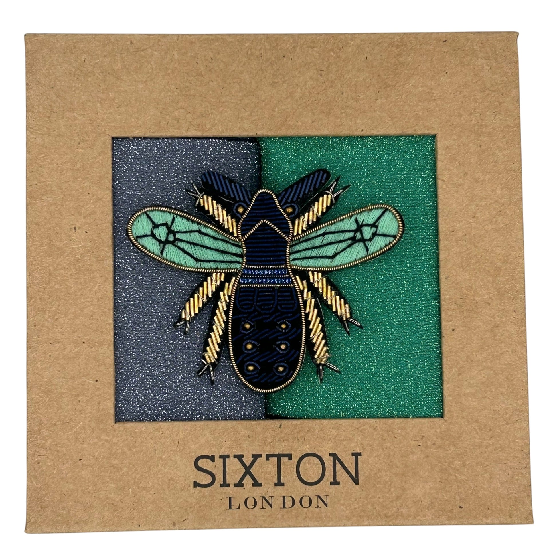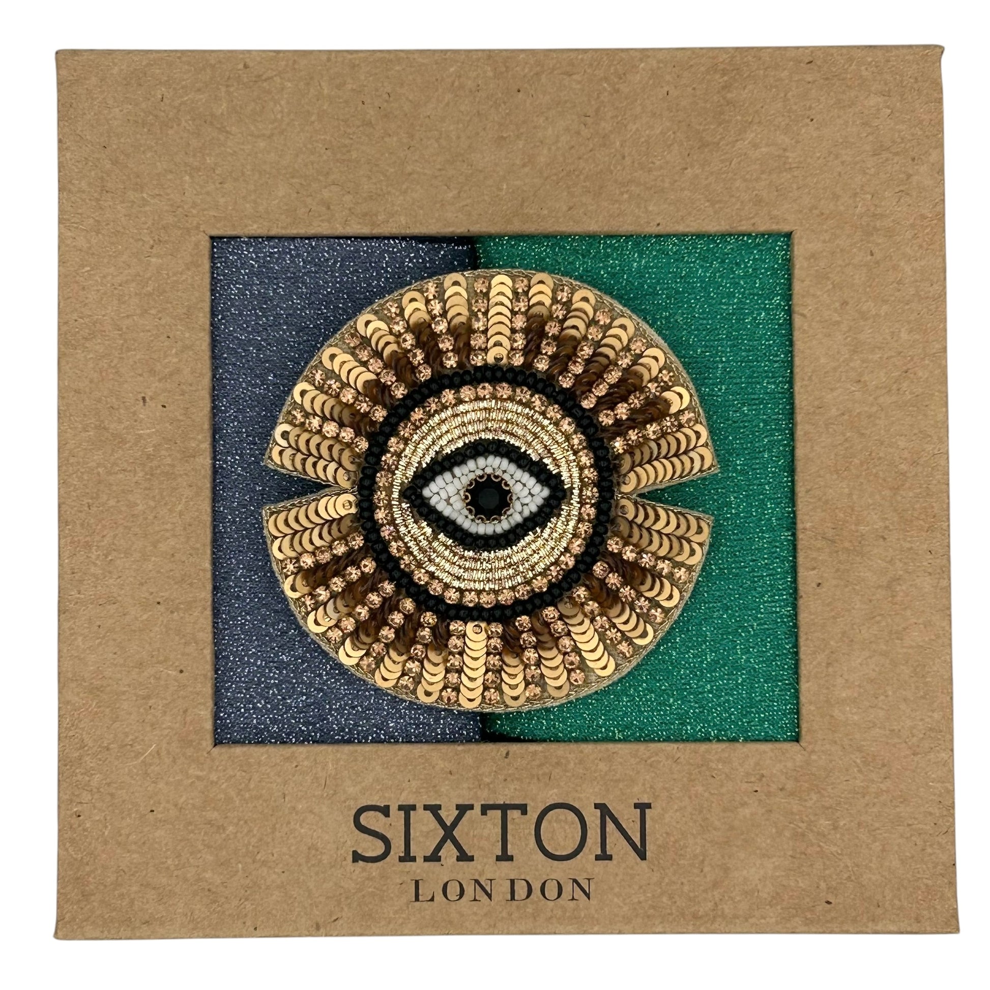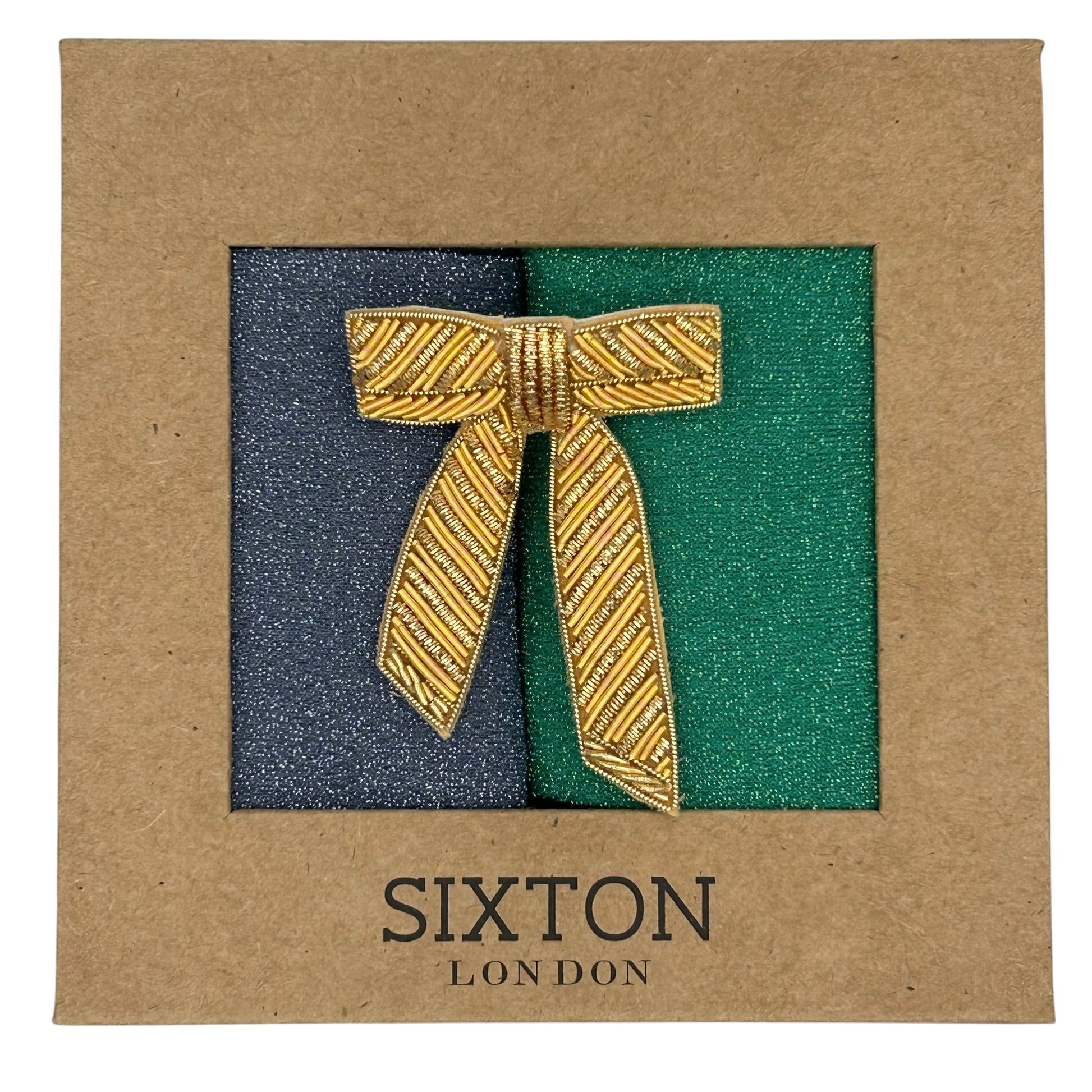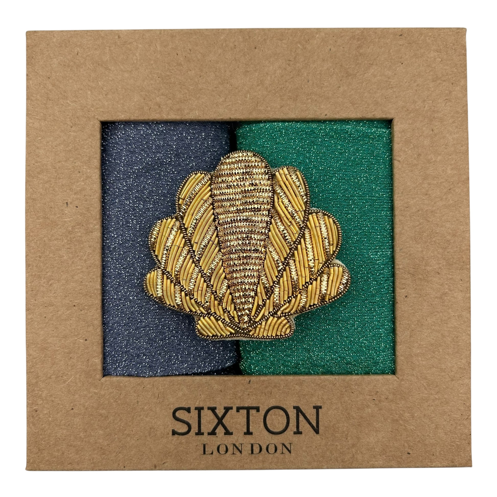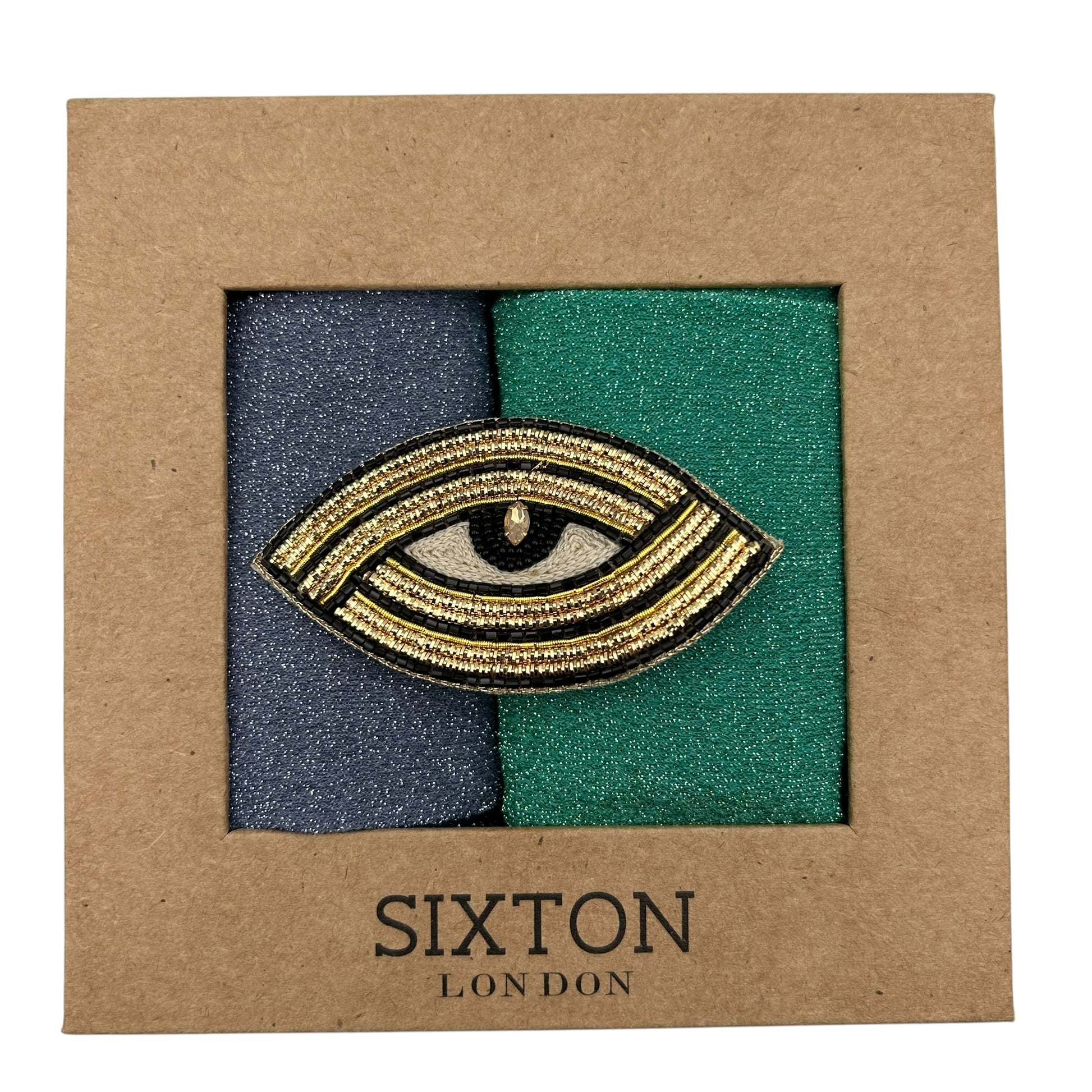 Two pairs of glitter socks in a gift box, with an embroidered brooch.