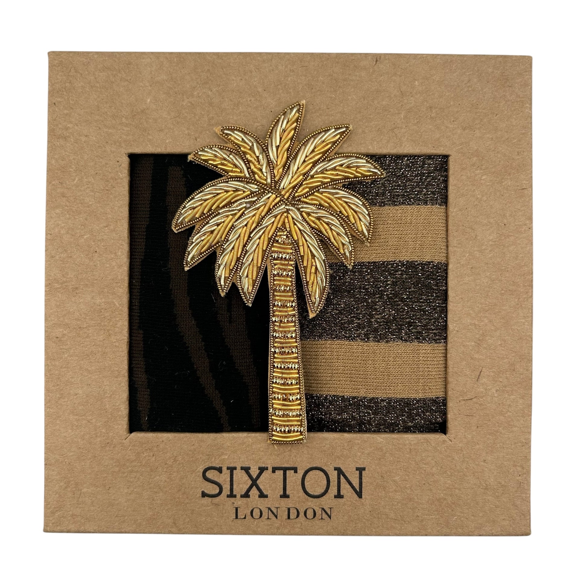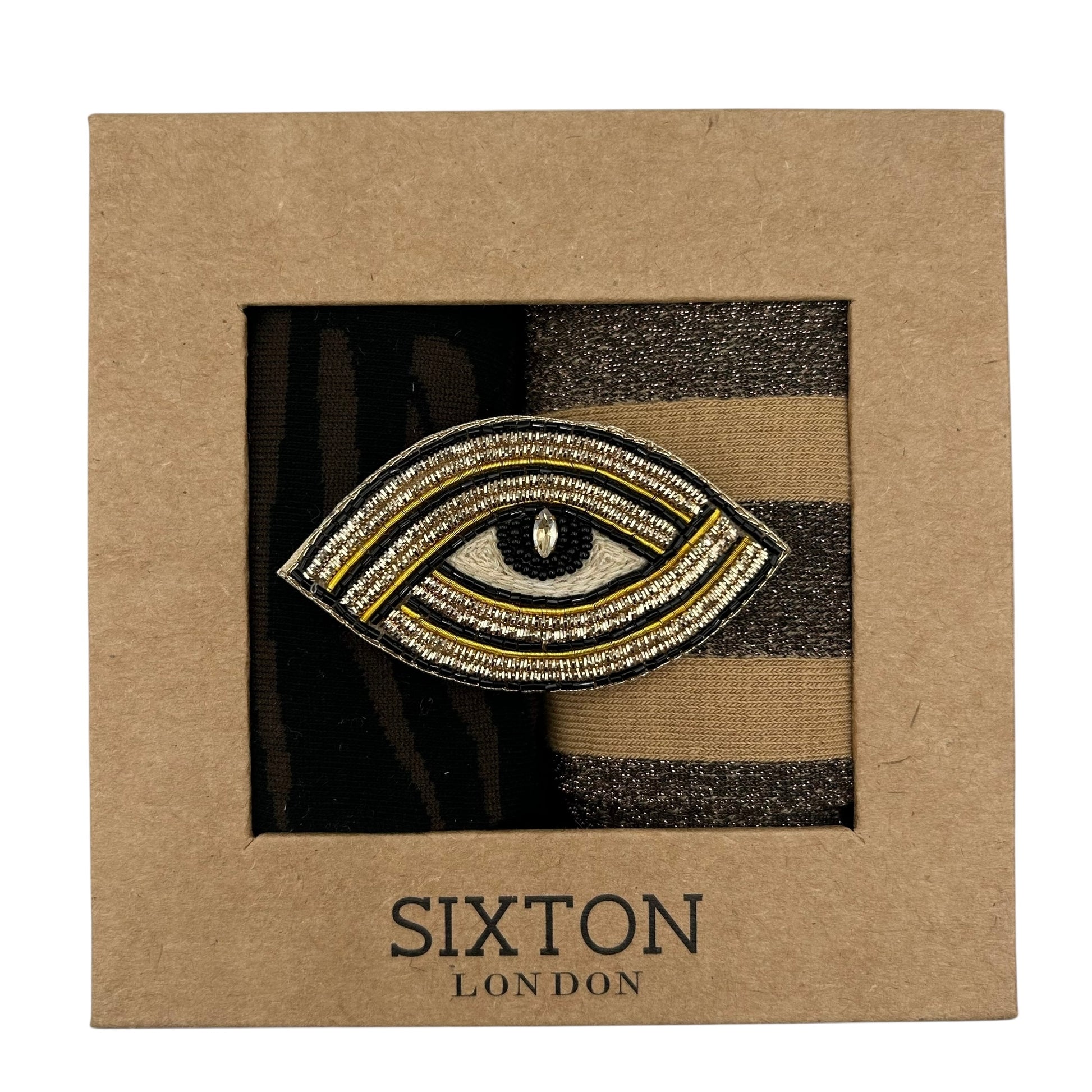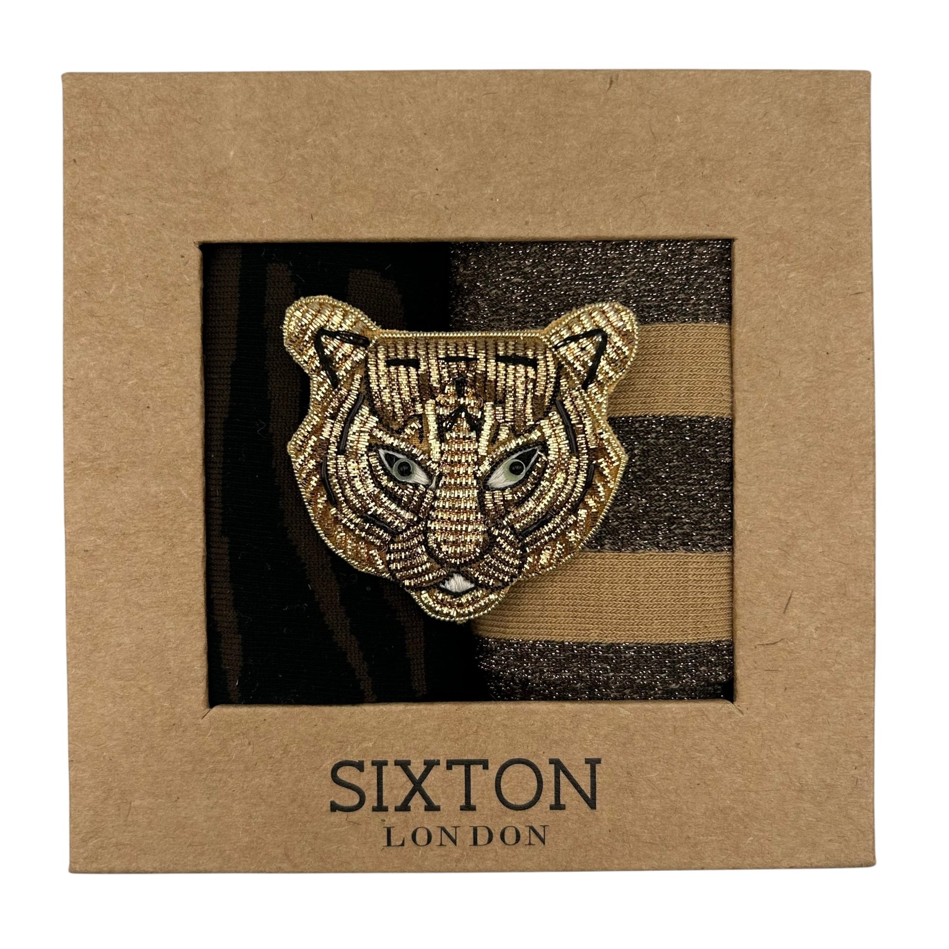 Two pairs of socks in a gift box, with a detachable embroidered brooch. Two gifts in one!