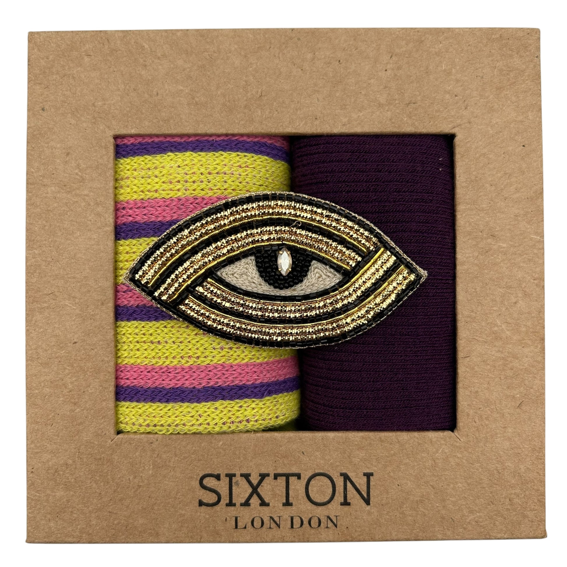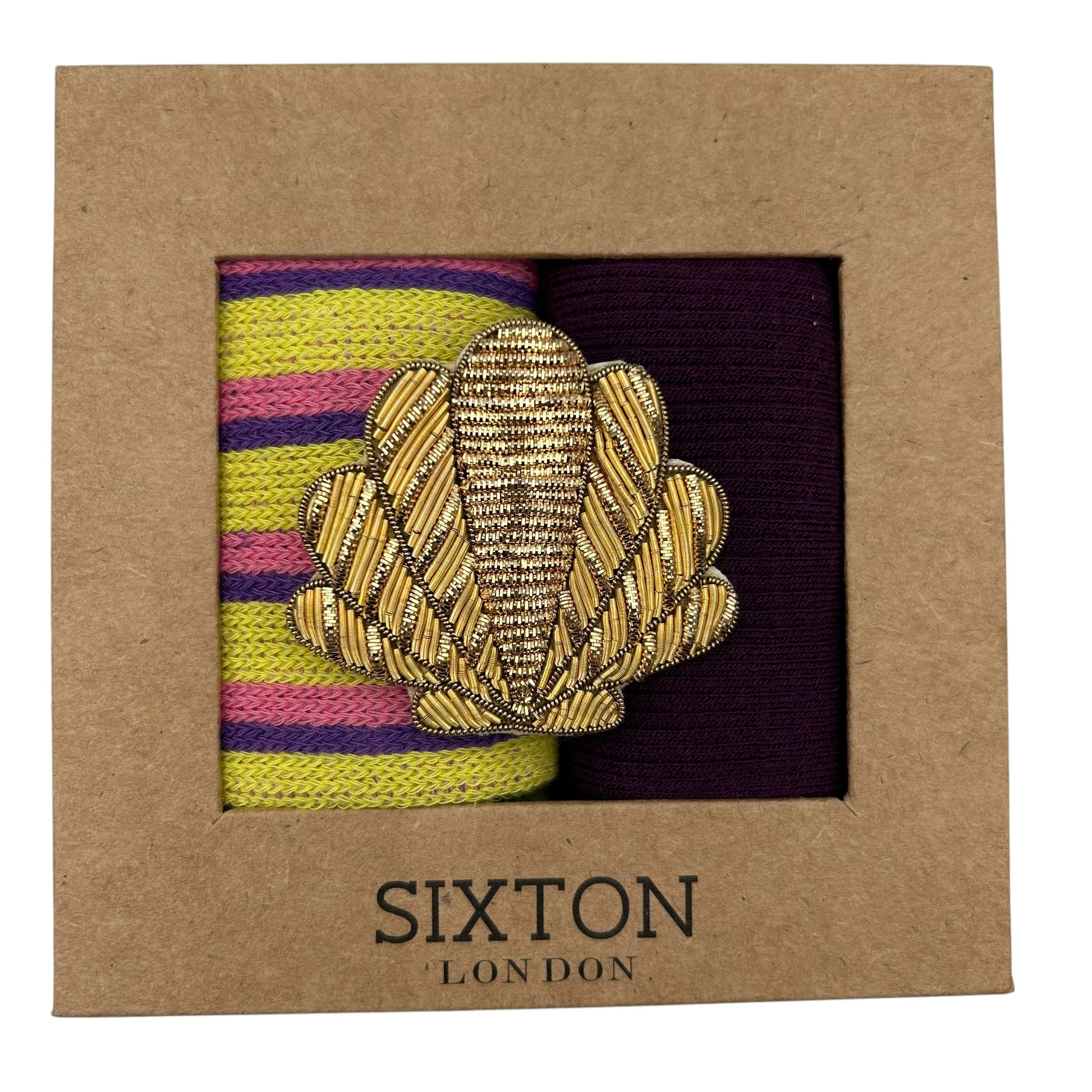 Seoul & Barcelona Purple sock box duo with embroidered brooch