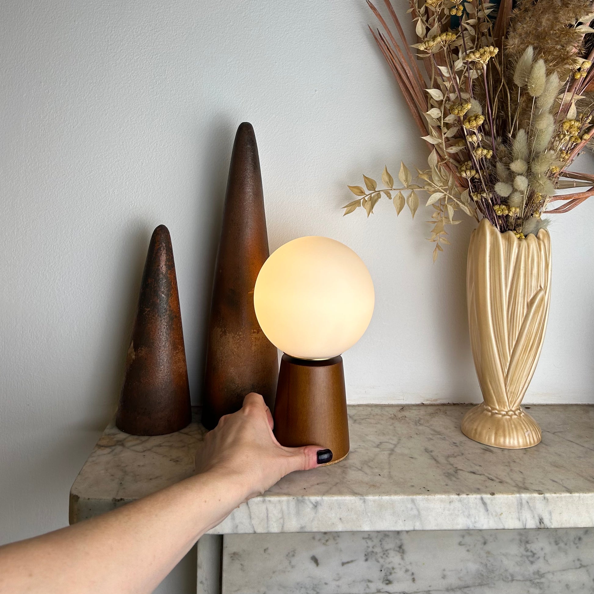 A small and beautiful, art deco style cone lamp, with three light settings - from warm to cool.