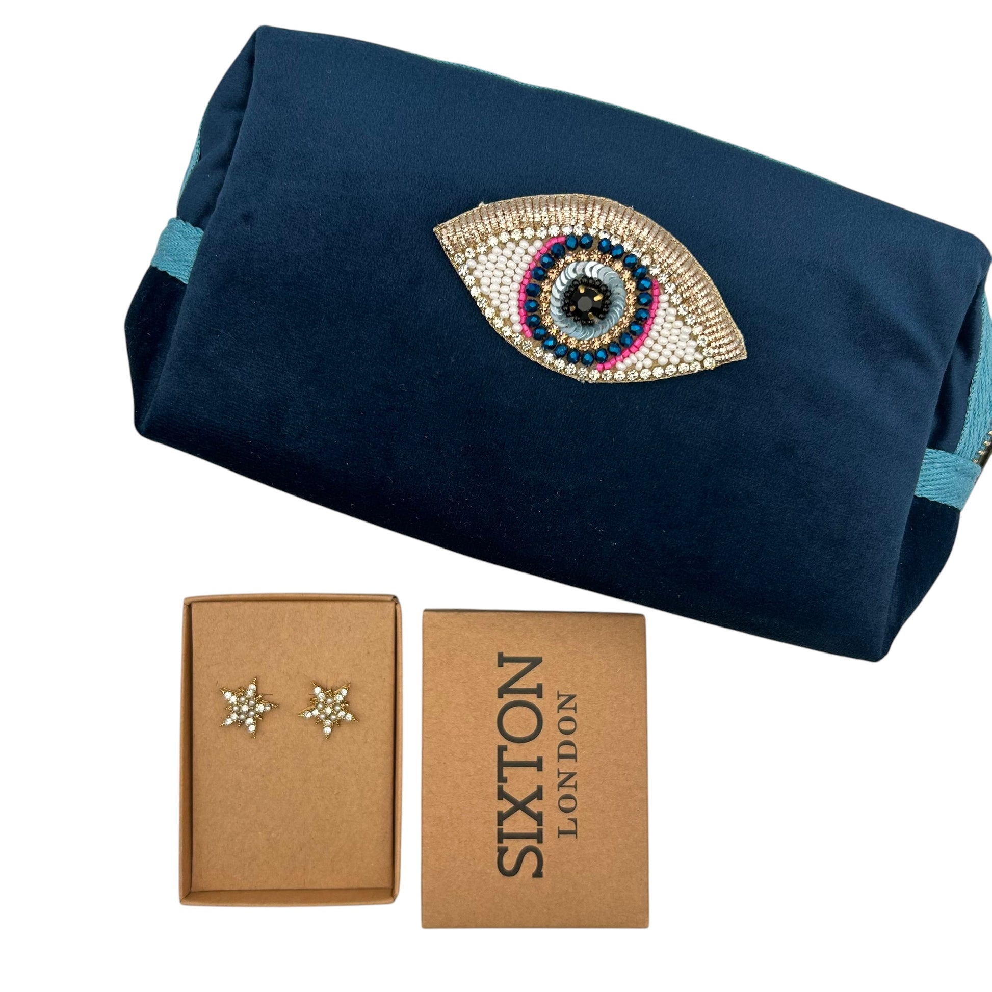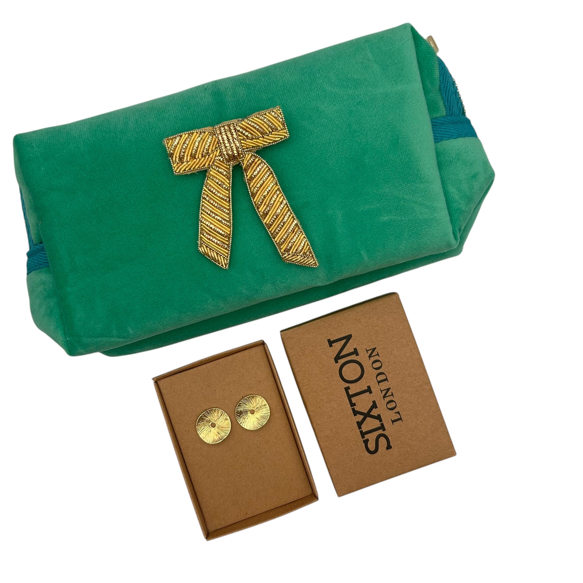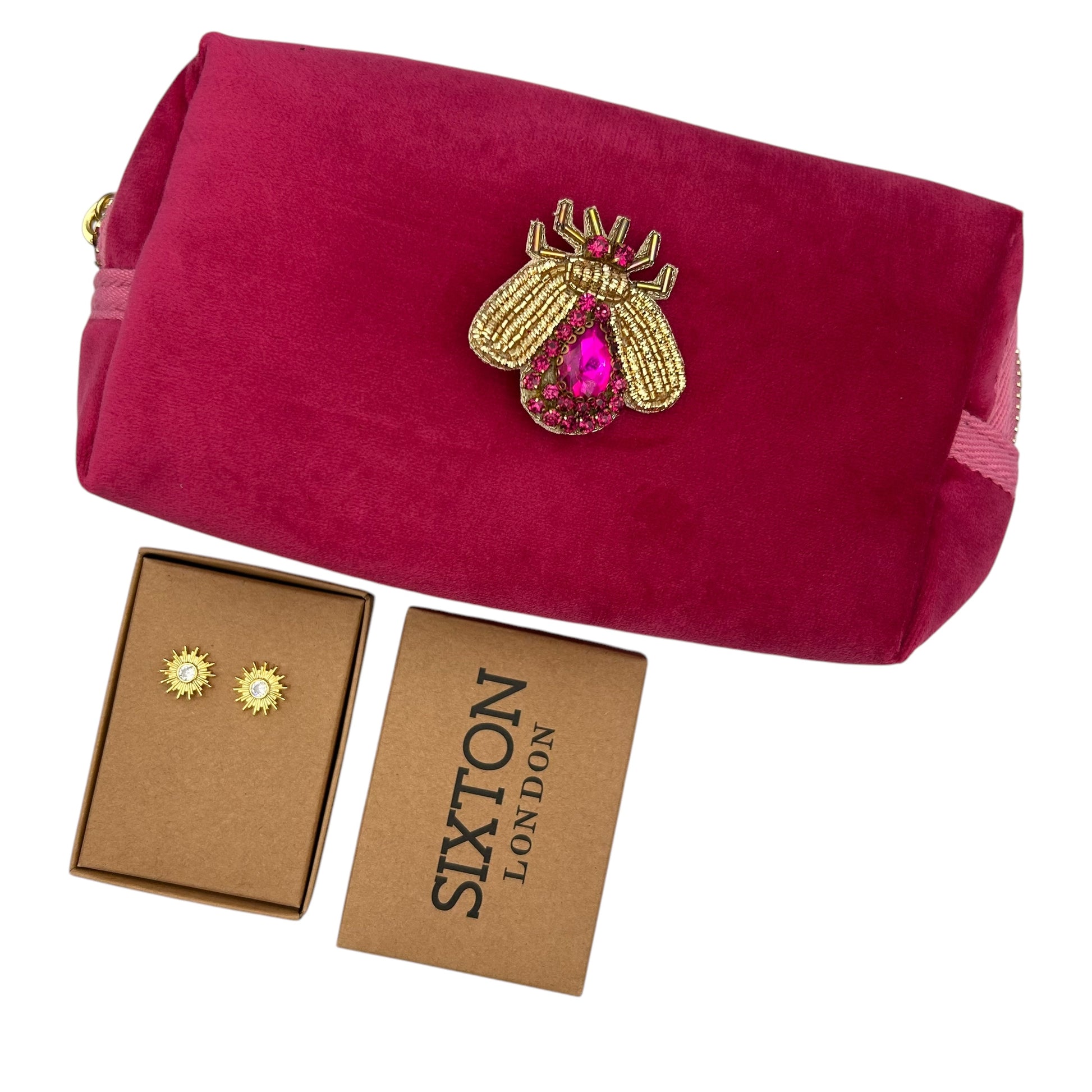 A small velvet makeup bag with a brooch - worth £24.99 and a necklace or pair of earrings - worth £18.99.