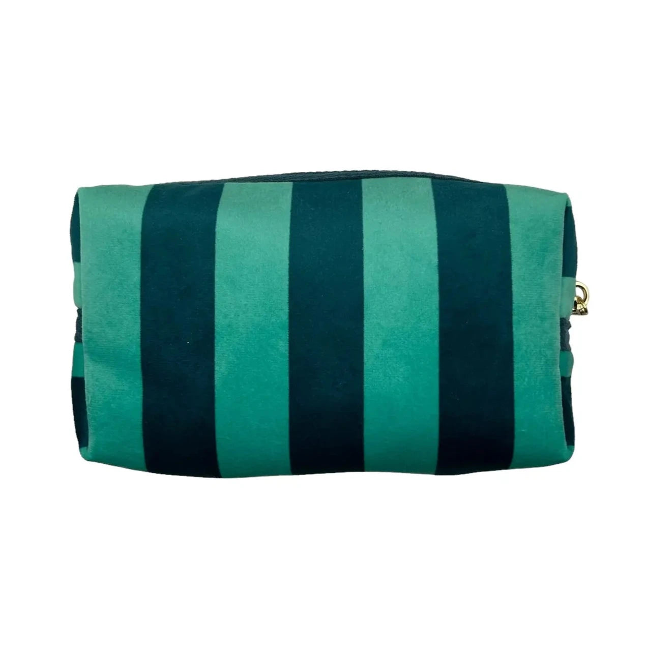 A gorgeous teal stripe velvet makeup bag